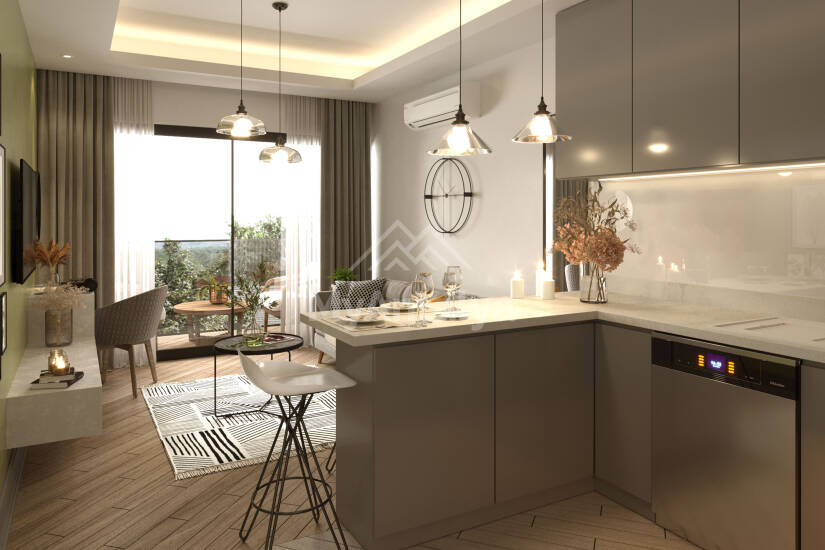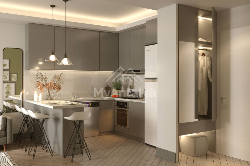 - kitchen with built-in furniture