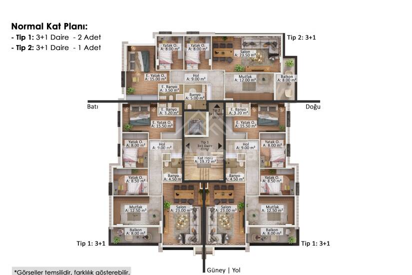 Rooms: 2+1, 3+1, 5+1