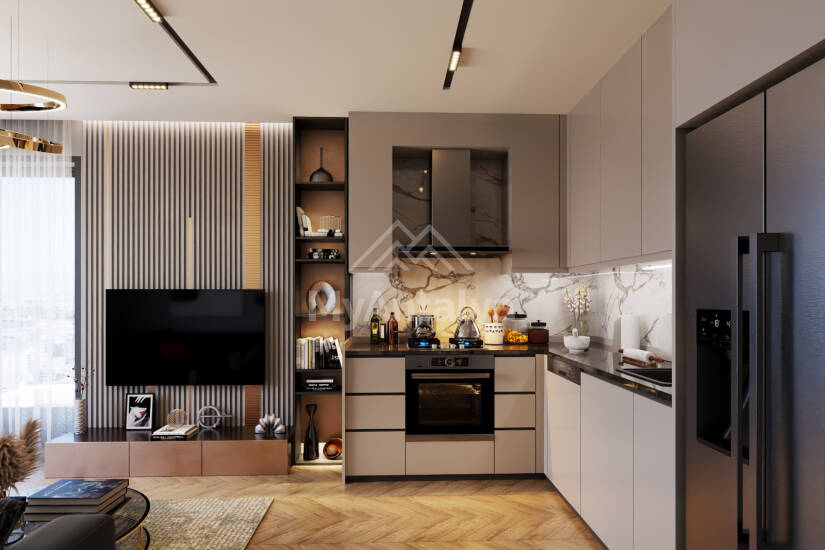 - kitchen with built-in furniture